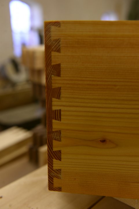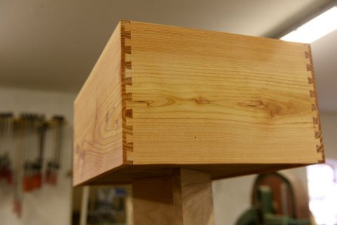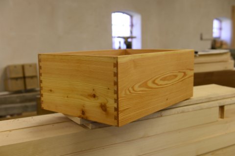 Opbevaringskasse med svalehalesamlinger. Materiale: Dansk lærketræ. Udført for privat kunde, som selv [...]havde materialerne liggende til tørring. Jeg bruger kun vellægeret og veltørret materialer for at undgå svind i forbindelse med fremstilling af mine opgaver.