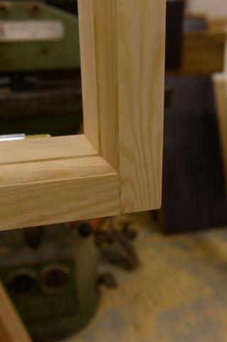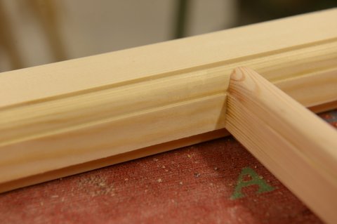 Sprosse i vinduesramme med kontraprofil efter gamle normer og forskrifter. Sprossen er tappet ind [...]i rammen.