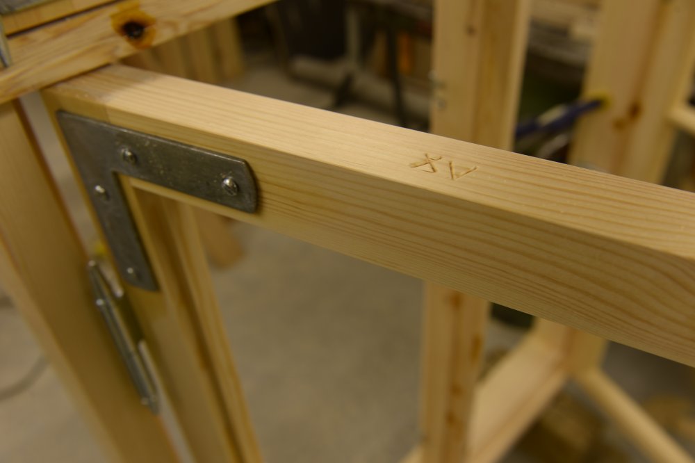 Vinduesramme med romertal. Alle rammer og karme bliver nummereret så man kan se hvor [...]hører til hvad. Dette er vigtigt ved flere vinduer, da hvert enkelt vinduesramme er justeret og tilpasset hver enkelt karm.