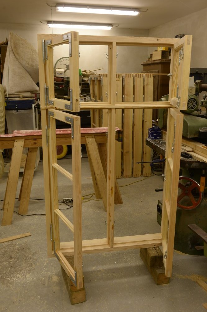 Vinduesramme til fredet gård på Samsø. Rammerne udluses med nyt spejlskåret kernefyrretræ. [...]Profilerne i rammetræet (og karme), genskabes så de ligner de oprigtige profiler.